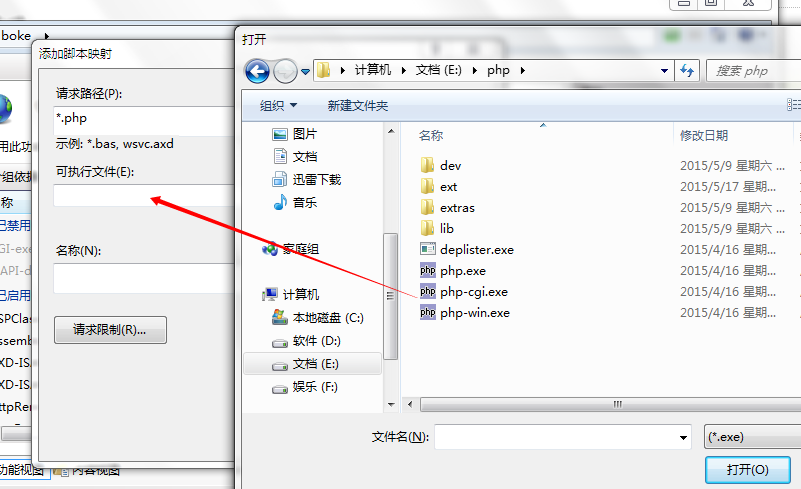 1.iis服务器添加处理程序映射(首先确保你的php环境没问题)