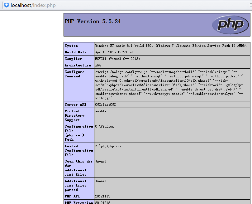 如果可以打印出如下配置信息,那么恭喜你,你的php运行在iis中没有问题了