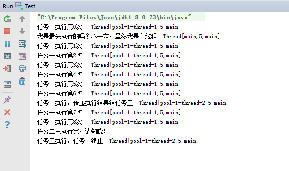 System.out.println("任务二执行,传递执行结果给任务三 "+Thread.currentThread());
