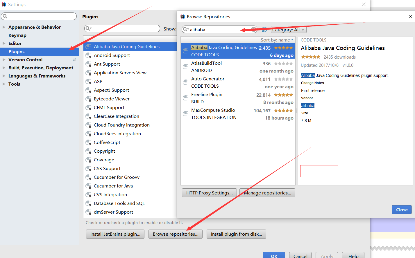 千呼万唤始出来,阿里巴巴在发布java编程规范后,时隔一年终于推出了IDEA的代码检查插件了。插件应该是十月八号就悄悄的发布了,插件源码推迟了5天才上传。如果说java代码规范从意识上统一了团队整体代码开发风格的话,那么规范插件的推出可以强制团队成员遵循编程规范,简直是大java行业内的一大福音。博主使用的开发工具是IDEA,所以下文也是IDEA插件相关的操作,Eclipse用户可以去阿里官方仓库参考,文末会给出相关的地址。好了,接下里就跟着博主一起来开启傻瓜试的阿里java规范IDEA插件的安装体验之路吧