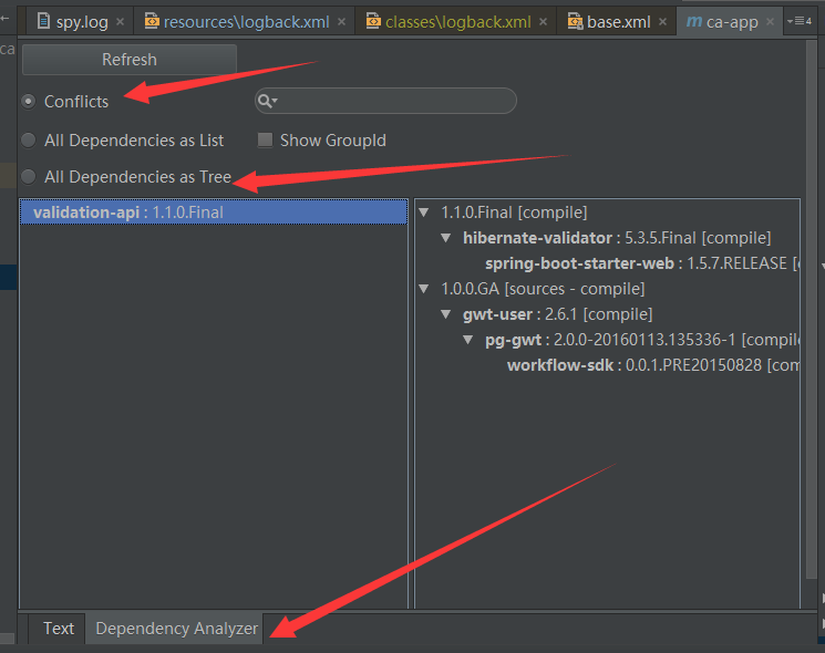 推荐理由:可以代替mvn dependency:tree命令的使用了,这个插件可以更直观的列出项目依赖的jar,非常牛逼的是可以直接列出项目中有冲突的jar,这对找jar冲突非常有用