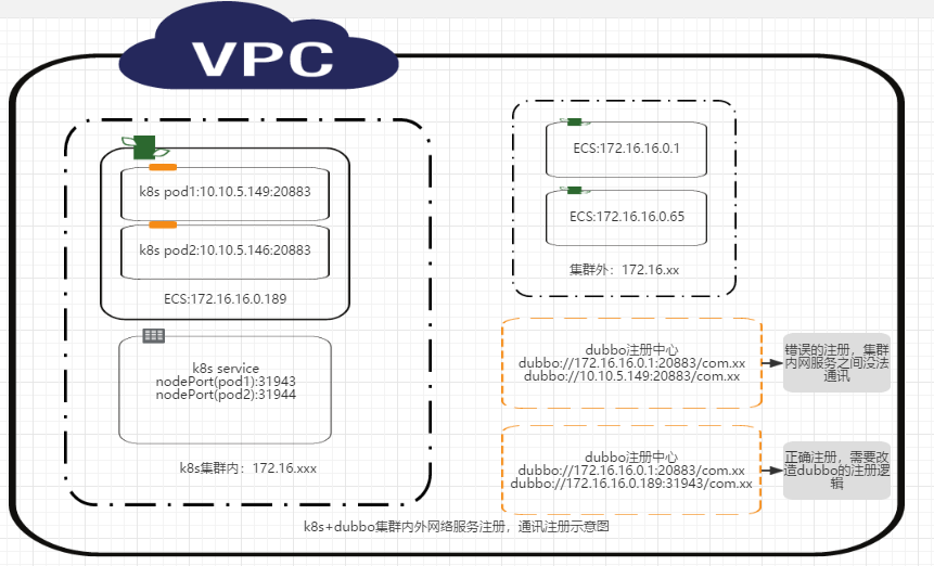 改造dubbo,将通过网卡选址改成通过kubernetes-client直接获取k8s集群内的信息,具体是将选址拿到的pod中的ip去k8s客户端拿到的pod列表筛选出pod的所在的宿主主机的ip+service暴露的端口,然后将这个注册到dubb的注册中心,那么集全外的服务拿到的地址就是172.10.15.xx:xxxx这样的地址,当然就可以直接和pod通讯了。