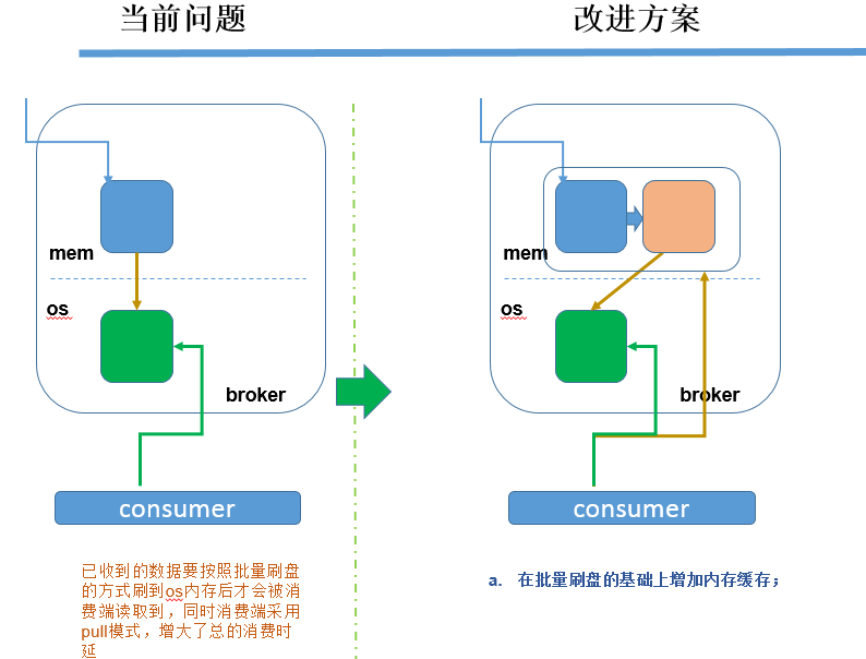 消息读取机制的改进: 相比于Kafka的顺序块读,TubeMQ采用的是消息随机读取模式,同时为了降低消息时延又增加了内存缓存读写,对于带SSD设备的机器,增加消息滞后转SSD消费的处理,解决消费严重滞后时吞吐量下降以及SSD磁盘容量小、刷盘次数有限的问题,使其满足业务快速生产消费的需求(后面章节详细介绍);