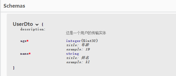 @Schema(title = "姓名", required = true, example = "kl")