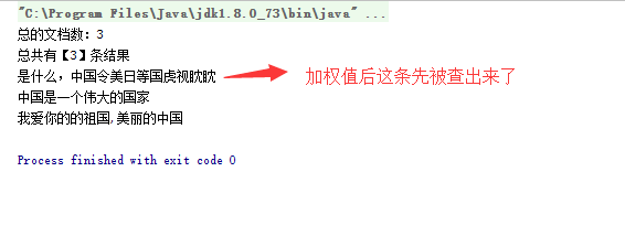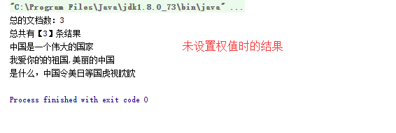所谓索引域加"权",就是根据需求的不同,对不同的关键值或者不同的关键索引分配不同的权值,因为查询的时候Lucene的评分机制和权值的高低是成正比的,这样权值高的内容更容易被用户搜索出来,而且排在前面。在Lucene3.x版本的时候可以给文档加权,到4.x版本后就取消了给文档加权了,就只有给文档域加权了,如果想达到给文档加权的效果,就要该文档的每个域都加权处理