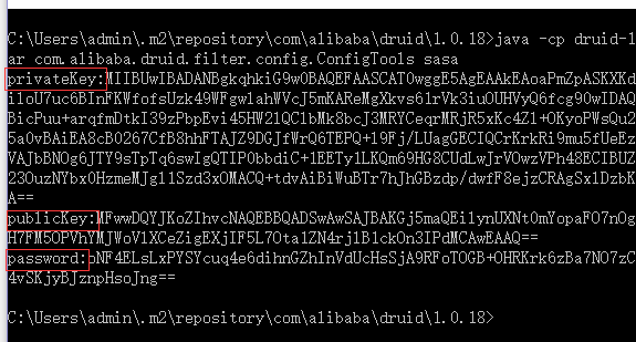java -cp druid-xxx.jar com.alibaba.druid.filter.config.ConfigTools you_password